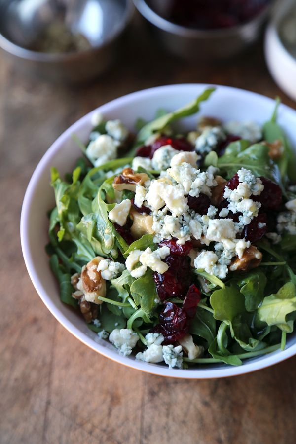 Place 3 ounces chopped chicken, 2 tablespoons crumbled low-fat blue cheese, 1/2 cup chopped cucumber, and 1 tablespoon each chopped pecans and dried cranberries on 2 cups lettuce. Toss with 2 tablespoons vinaigrette. 356 calories